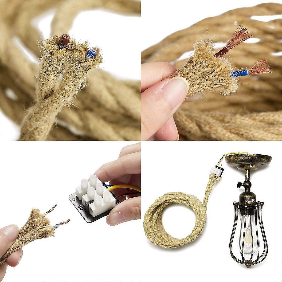 2 Core Linen Vintage Rope Lighting Cable Copper Wire Covered Retro Braided Industrial Rope for DIY Pendant Lamp LED Lighting 10m Electrical Wire Rope