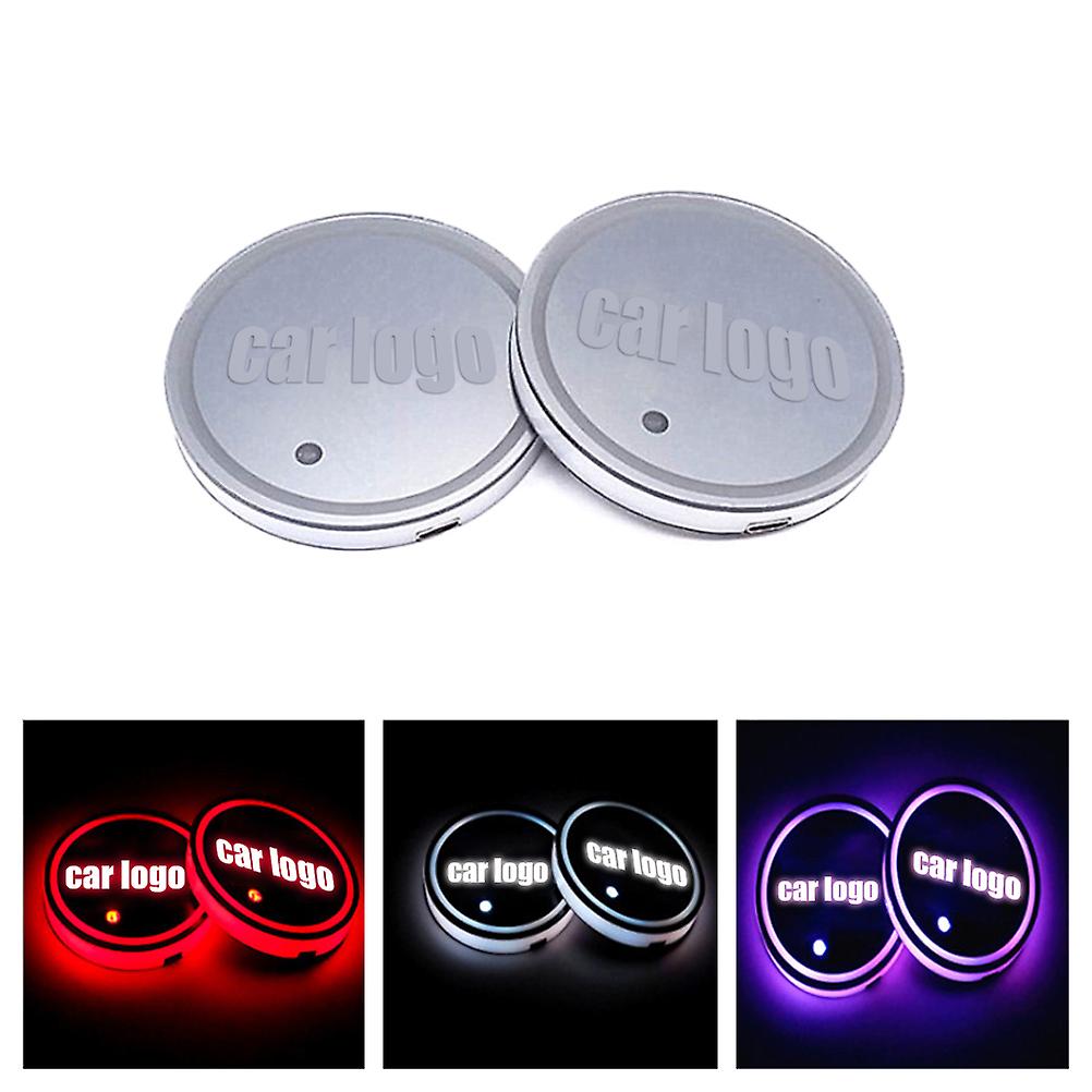 2Pcs LED Car Cup Holder Pads 7 Colors Changing USB Charging Mats Bottle Coasters Car Lamps