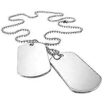2 PCS Alloy Pendant Necklace Pendant Silver Double Dog Tag plate Army Biker Chain Necklace Man Woman