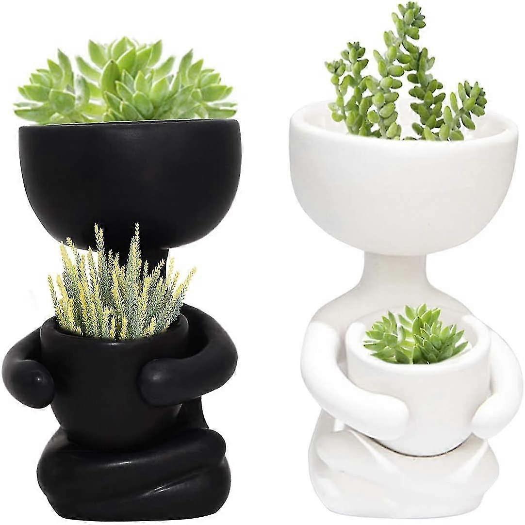 2 Pcs Ceramic Succulent Plant Pot Creative Human Shaped Small Cactus Pots Flower Pots Mini Plant Planters For Desktop Usage Home Decoration, Handicraf