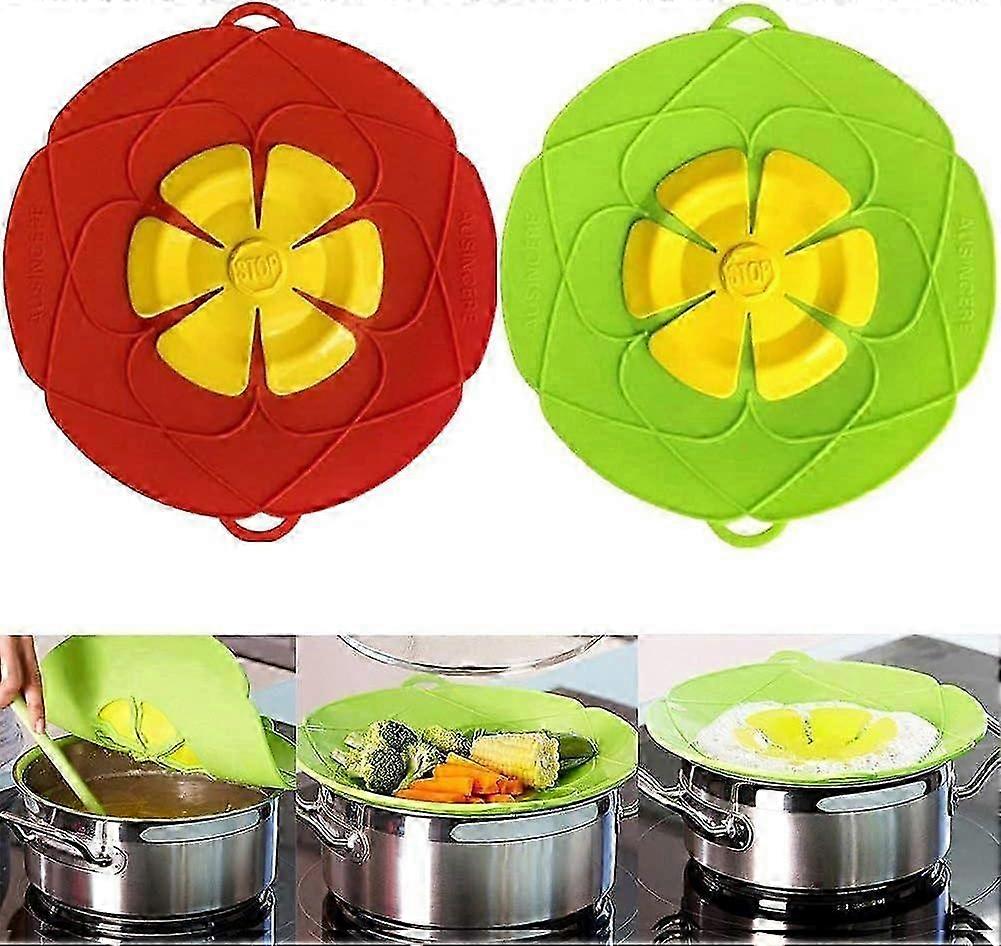 2 X Spill Stopper Lid Cover And Spill Stopper, Boil Over Safeguard,Silicone Spill Stopper Pot Pan Lid Multi-Function Kitchen Tool
