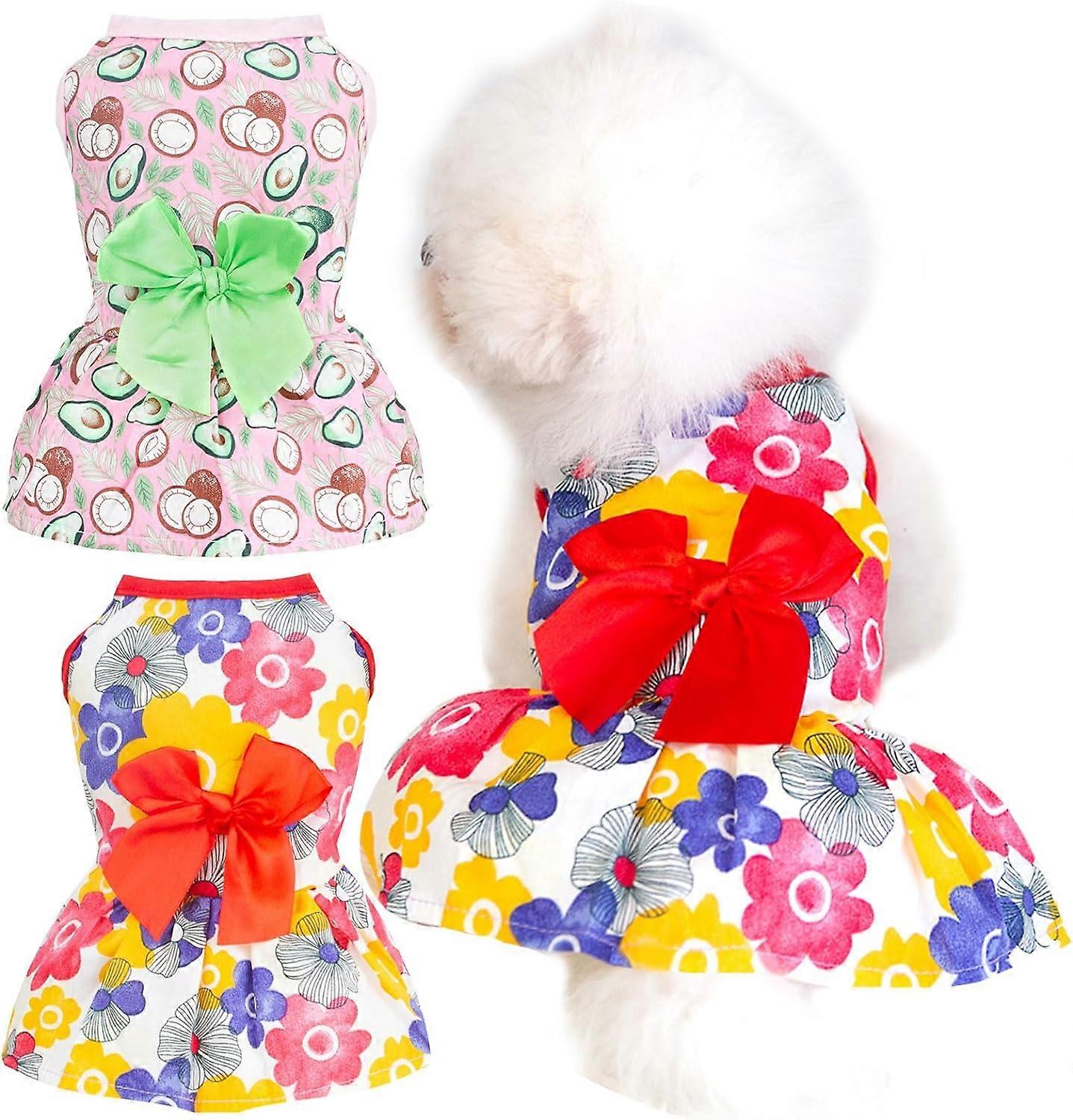 2 Pack Small Dog Dress Soft Cotton Summer Dog Clothes Girl Funny Floral Avocado Puppy Princess Dress Cute Bowknot Dog Dresses (Red/Pink,XS)