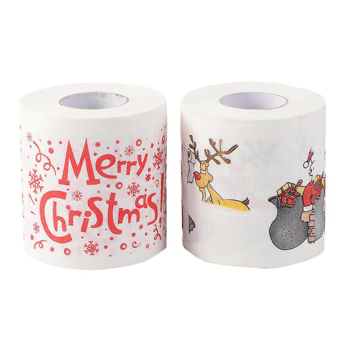 2 Roll Creative Toilet Roll Paper Christmas Santa Printing Roll Paper Colored Printed Christmas Bath Tissue