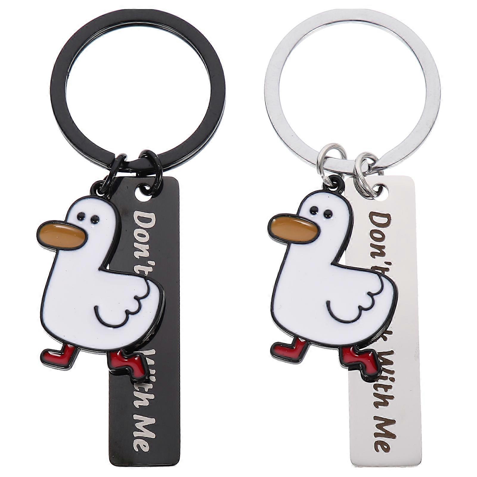 2Pcs Stainless Steel Keychains Duck Shape Design Keychains Hanging Keychains Ornaments