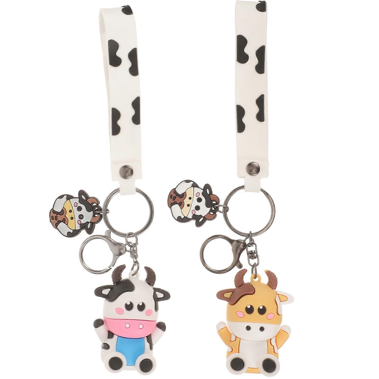 2Pcs Cow Key Chain Cartoon Animal Key Rings Bag Pendant Hanging Decoration Couple Gift