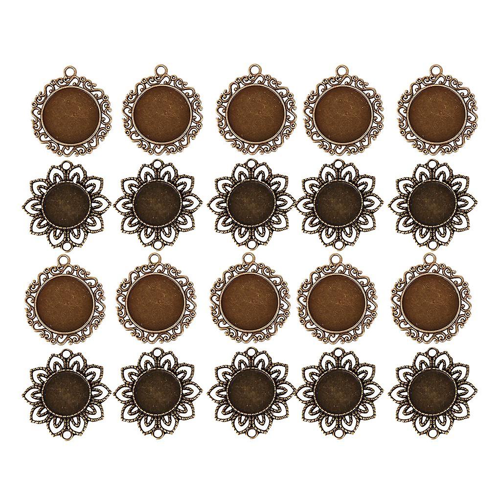 20 Pieces Flower Shape Blank Cabochon Bezel Settings Tray DIY Pendants Base