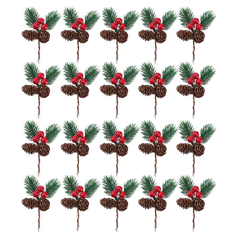 20Pcs Berry Pine Cones Pine Needles Stems Picks Artificial Christmas Berries Decor for Crafts
