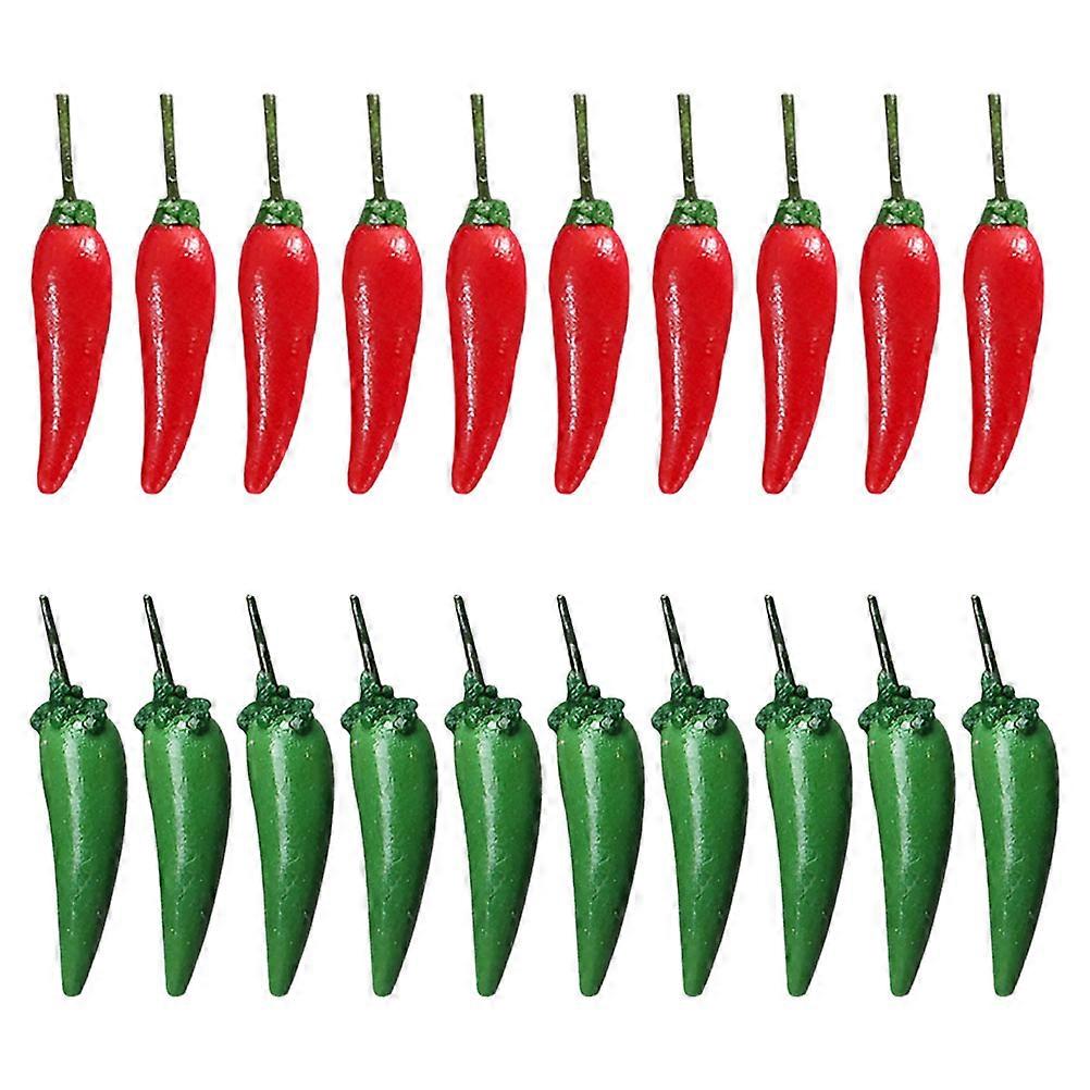 20PCS Mini Lifelike Pepper Faux Chili Peppers Realistic Decorative Assortment for Kitchen Home Dollhouse Educational Display Red Green