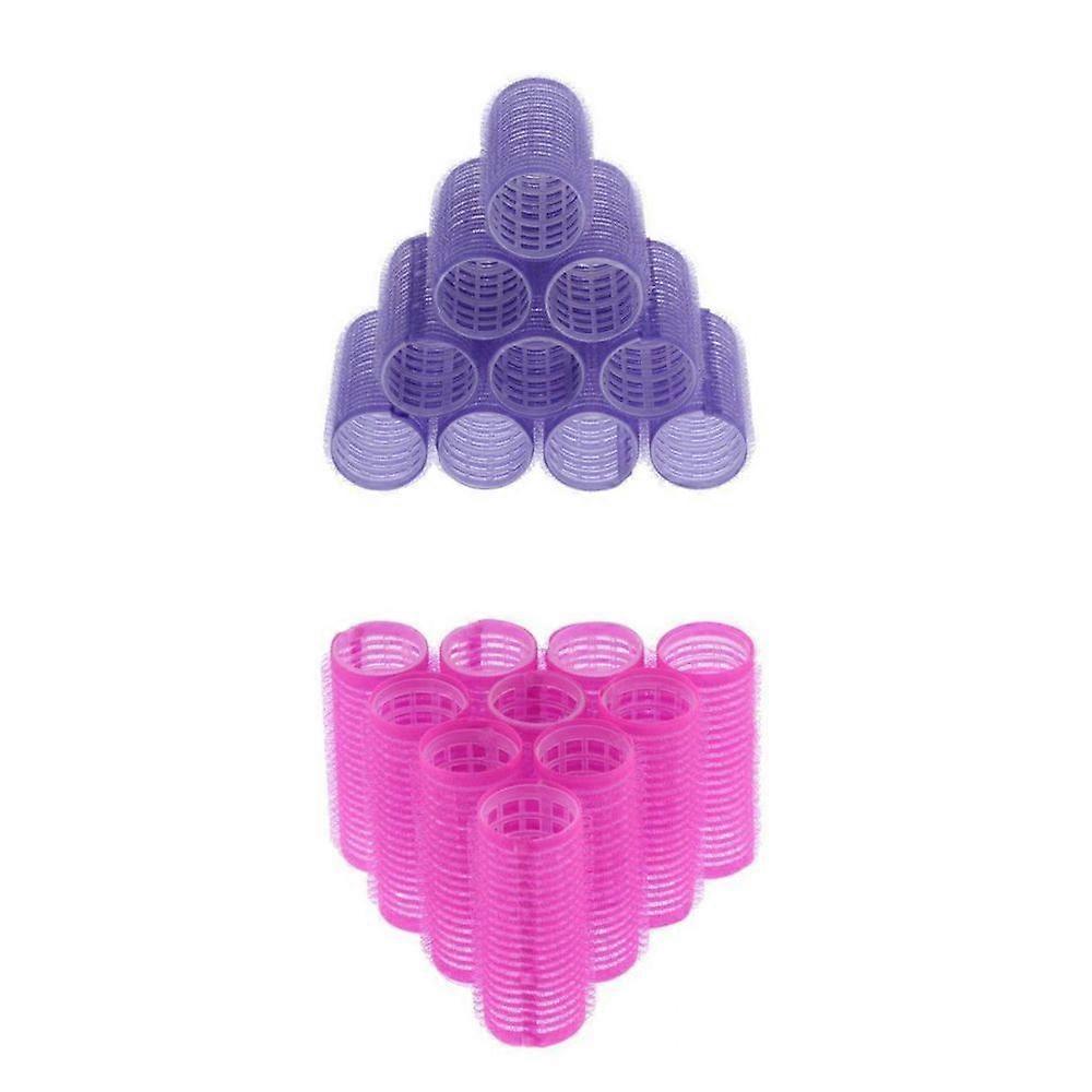 20Pcs 24mm Rose + 32mm Violet Auto Grip Hair Rollers Salon Set Pour Femmes
