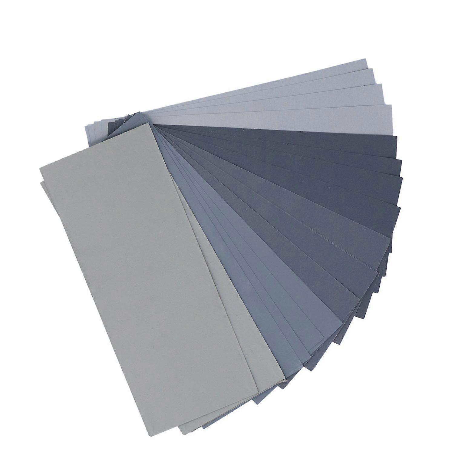 Item Type: Sand Paper Material: Resin 20 pcs / set. Grit: 1000#, 2000#, 3000#, 5000#, 7000# 4pcs of each. Sandpaper Length: Approx. 23cm / 9.06in Sandpaper Width: Approx. 9cm / 3.54in Package List: 20 x Sand Paper