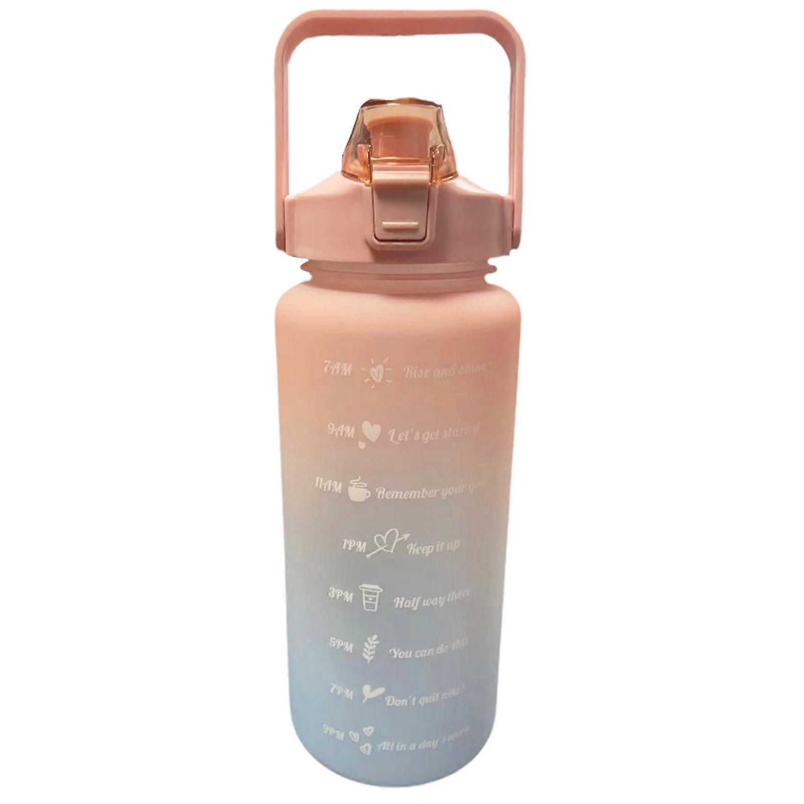 2000ml Straw Bottle with Time Marker Gradient Leakproof BPA Free Flip Top Motivational Fitness Sports Water Bottle Outdoor Supplies Jikaixiang