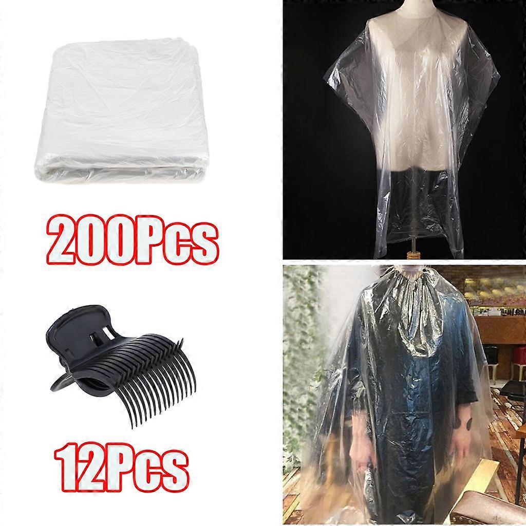 200x Disposable Haircut Cloak Dress Stylist Barber Capes With 12 Clips