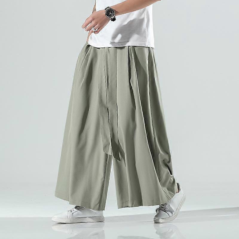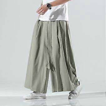 Chinese Style Harajuku Linen Cotton Linen Pants Man Japanese Kimono Pants Male Streetwear Summer Retro Wide-Leg Trousers
