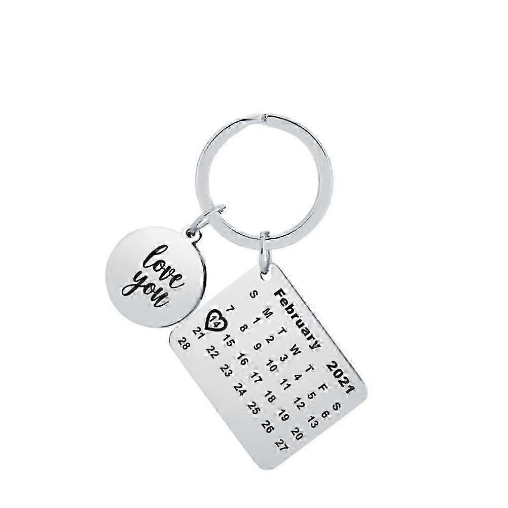 2021 Stainless Steel Calendar Keychain Special Date Calendar Keychain Wedding Aniversary Memory Gifts for Girlfriend Friends Family
