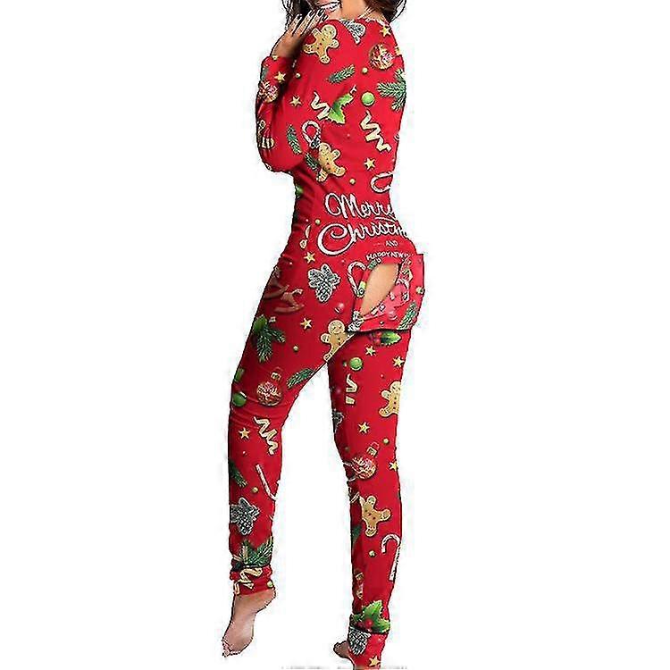 2023 Christmas Sexy Women Deluxe Pajamas Button-down Butt Open Ass Flap JumpsuitVery nice giftVery nice gift