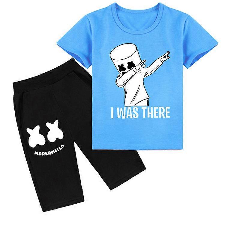 2023 New Children's Spring Two Piece Fashion Dj Marshmelow Children's Short Sleeve+Shorts Set 3-13Y Boys and Girls' Sportswear