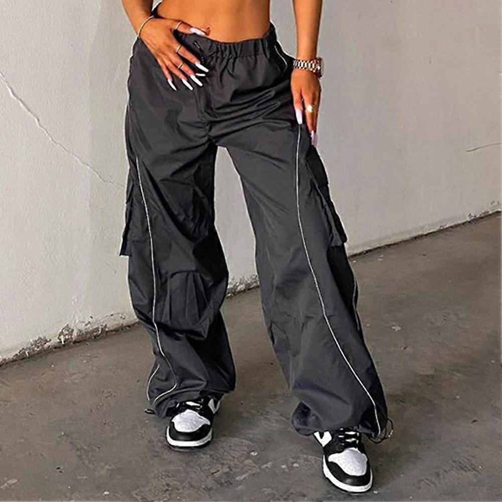 2023 New Women's Baggy Hippie Pants,Side Pockets,Streetwear,Cargo,Contrast Stitching,Casual,Wide Leg,Tracksuit