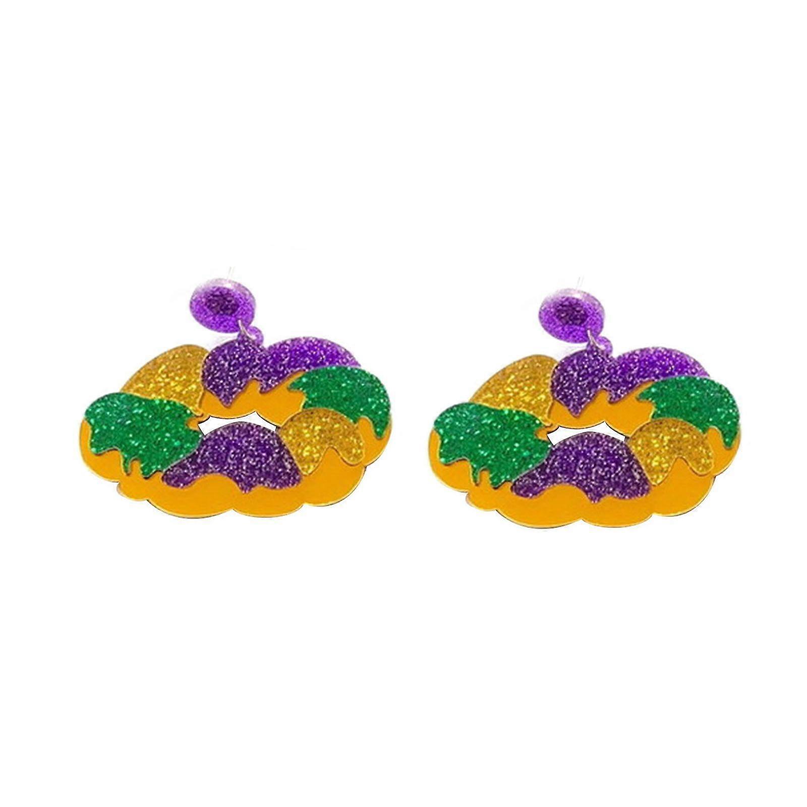 2023 New Mardi Gras Dangle Earrings for Women, Carnival Theme Mask Lips Hat Lobster Modelling Earrings for Mardi Gras Party