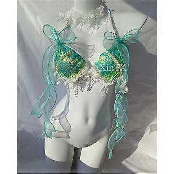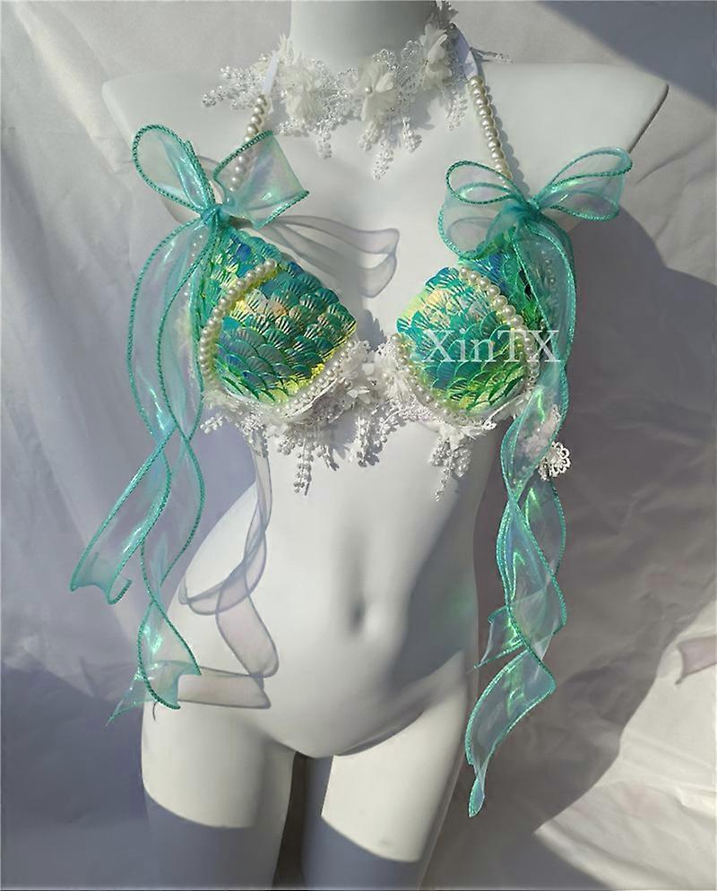 2023 NEW!Handmade Shiny Sequins Sexy Bikini Bra with Lace Neckband Sparkle Fish Scales Swimwear Top For Adults Women Girls
