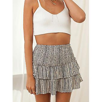 2023 Hot Selling Womens Sexy Skirt Pleated Ruffle Printed Fashion Vintage Skirt For Ladies Vestido De Mujer Medio