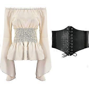 2023 נשים חולצת רנסנס צמרות מחוך חגורת מותניים ימי הביניים ויקטוריאני סירה מתחת לכתפיים חולצה פיראט מהיר