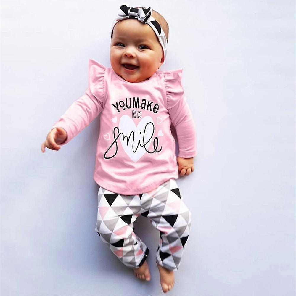 2023 FALL Newborn Baby Girls Clothes Set You make me smile T-Shirt +Striped Pants 3PCS Newborn Baby Clothing Outfits 0-24 Months