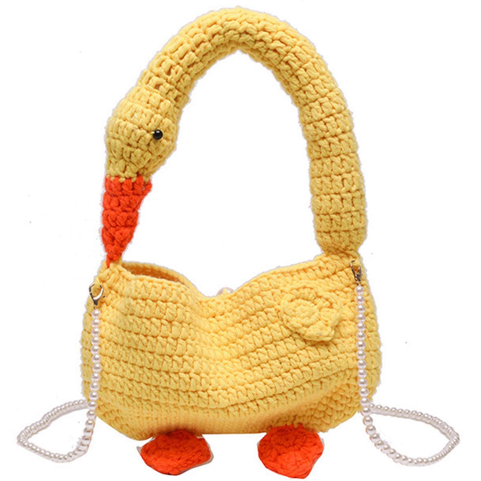2023 Shoulder Bag Pearl Chain Tote for Women Girl Fashion Cute Geese Designed Woven Bag Handbag Crossbody Bag Yellow