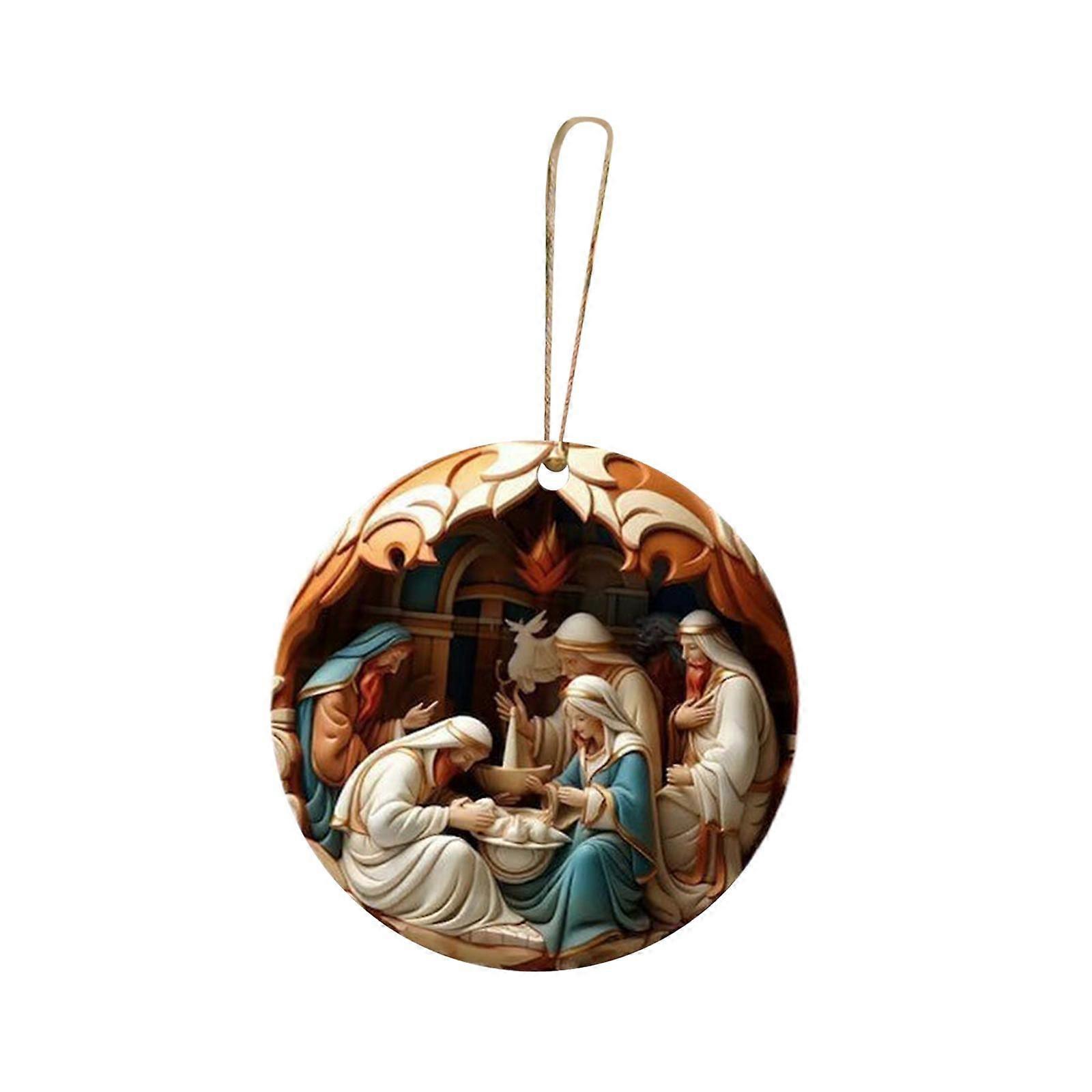 2023 Christmas Tree Pendant Nativity Scene Hanging Ornaments Xmas Tree Decor Christmas Decorative for Yard Holiday Xmas Party