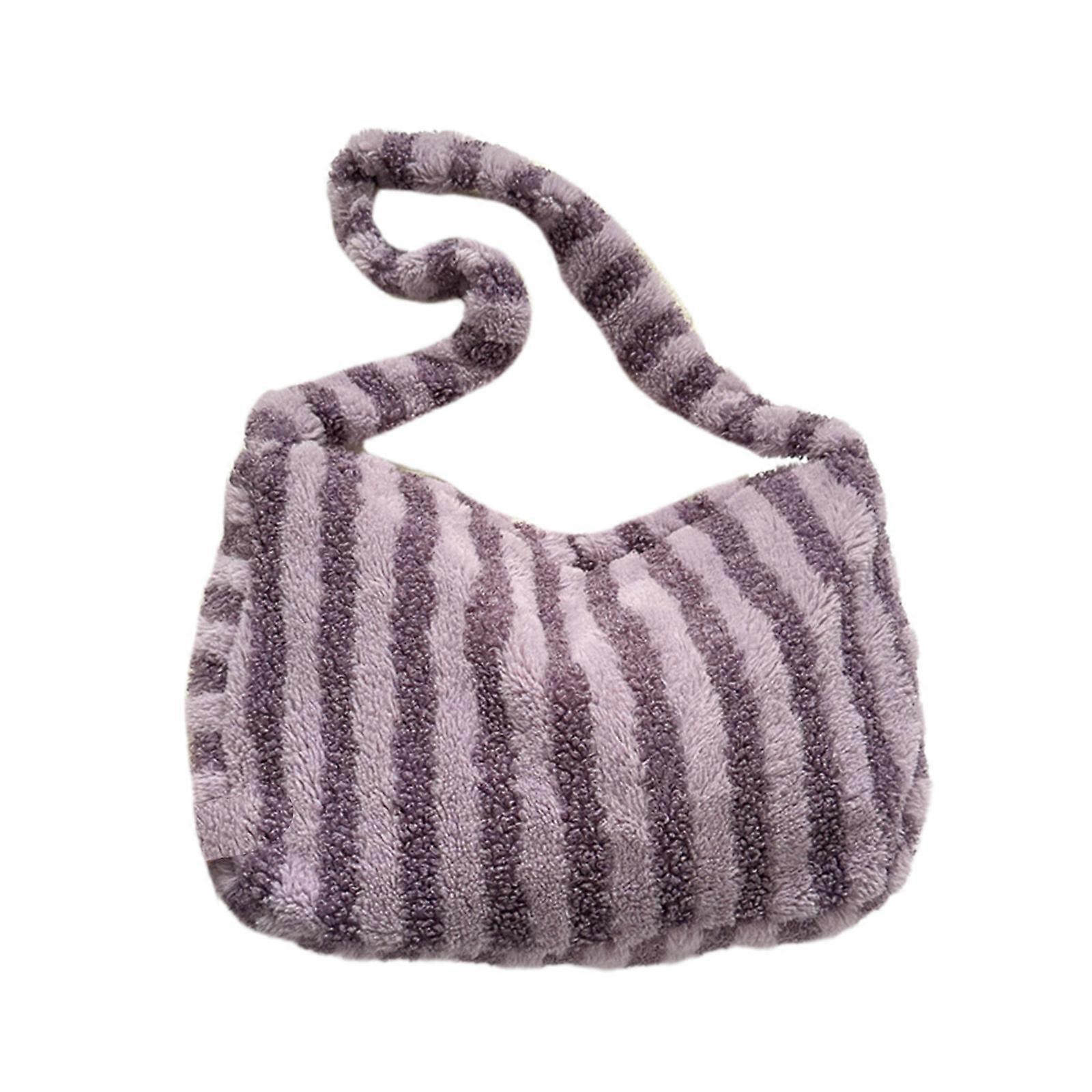 Striped Messenger Bag Shopping Bag Fashion Crossbody Bag Versatile Shoulder Bag for Women Versatile Plush Trendy Bag Purple