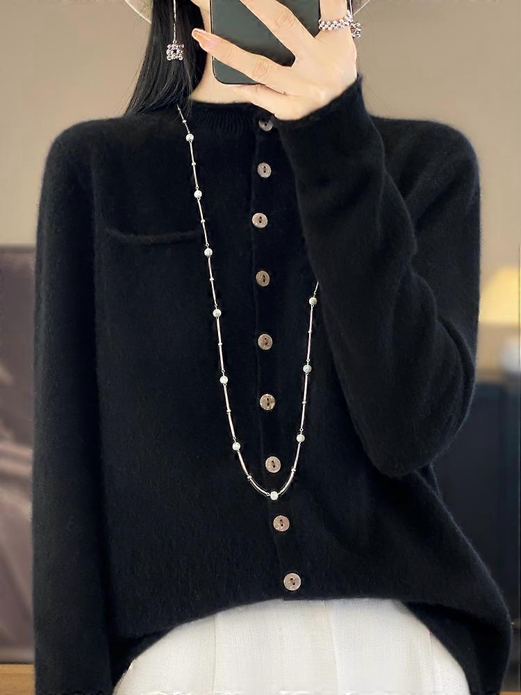 2024 New Fashion Women Sweater Spring 100% Pure Merino Wool Cardigan Ruffled-collar Jacket Female Clothing Grace Knitwear Tops