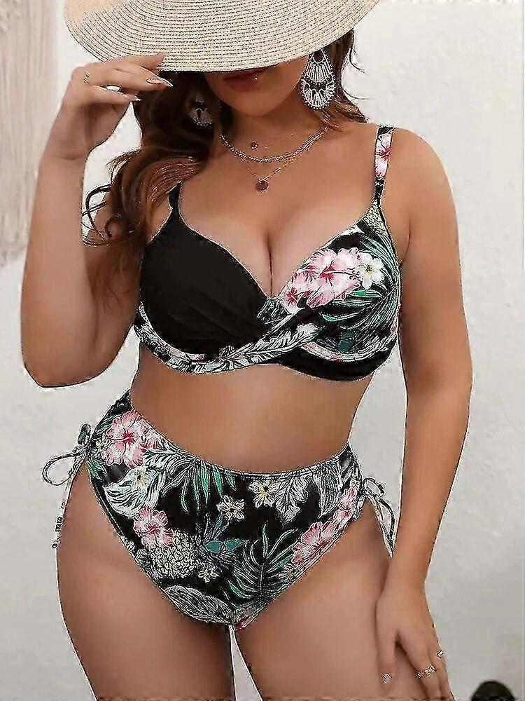2024 Plus Size Scalloped High Waist Bikini Sets Swimsuit For Women Floral Sexy V-neck Two Pieces Beachwear Bathing Suit Swi 2025