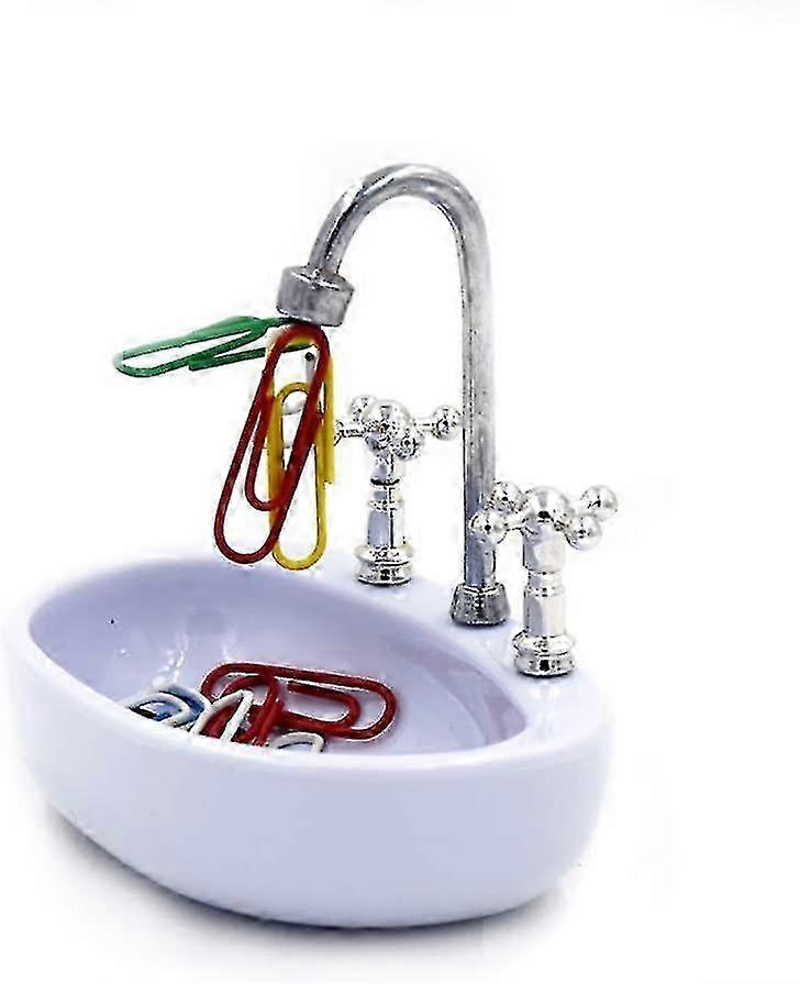Package Include: 1 * paper clip holder; Color white; Size: approx 2.95 * 3.35 inches / 7.5 * 8.5 cm .. Widely Used: Can be used as a paper clip on the desk or as a small jewelry container in the bathroom. Also as photo props and dolls for children .. Magnetic " faucet ": There is a magnet on the faucet, you can place the paper clip under it, keep your clips in place, conveniently take and use .. Creative design: cute basin-shaped paper clip holder, eye-catcher .. Product description Creative cymbal holder with magnetic, eye-catching accessories for your desk as well as cute photo props and dolls for children. Technical data: 1. Material: PS + ABS. 2.Size: Approx. 2.95 * 3.35 inches / 8 * 8.5 cm. Office furnishings Scope of delivery: 1 * paper clip holder