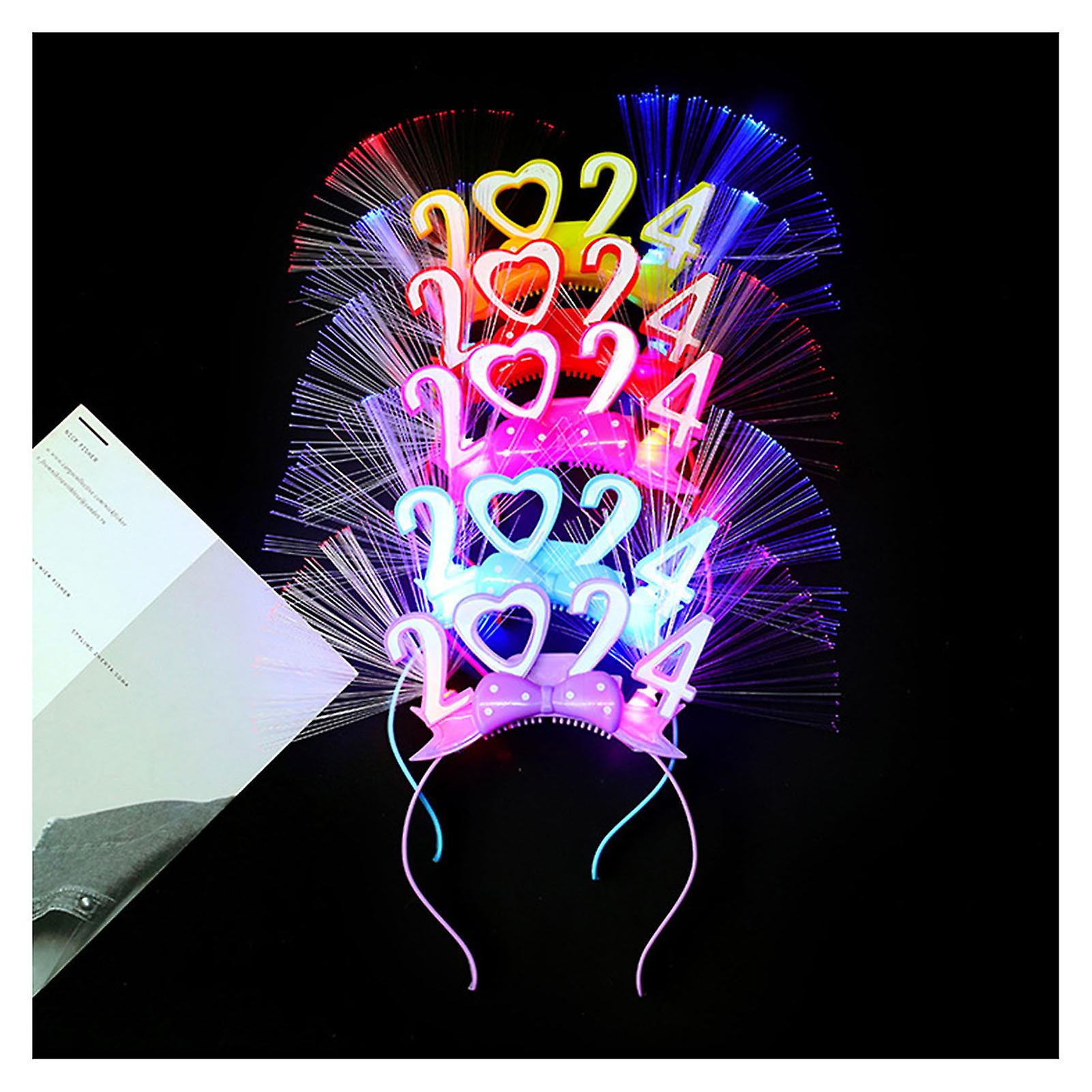 2024 New Year Party Hairband Shiny Sequin LED Elastic Anti-slip Luminous Bow Decor Lightweight Hairband Photo Prop Gift Hair Accessories