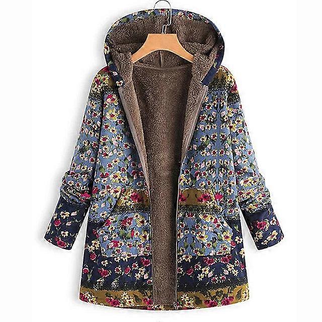 2024 Women Winter Floral Printed Coat Vintage Harajuku Plus Size Loose Casual Jackets Plus Velvet Thick Warm Hooded Fashion Coat