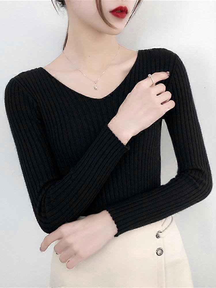 2024 V Neck Women Autumn Winter Sweaters Slim Knitted Pullovers Soft Warm Solid Jumper Female Sweater Casual Knitwear Jersey Top