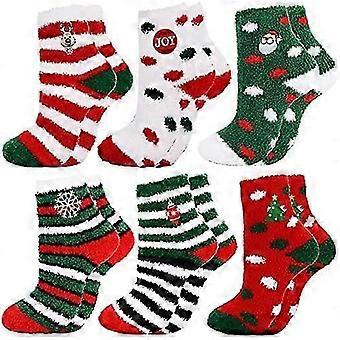 2024 6 Pairs Christmas Socks Socks Fluffy Christmas Socks Funny Winter Warm Bed Socks Advent Calendar Christmas Secret Santa Gift for Women Ladies