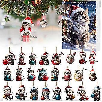 2024 Cute Cat Christmas Advent Calendar Blind Box,24Days Of Xmas Countdown 2D Cat Pendant Decorationchrui163
