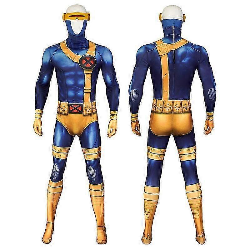 2024 Cyclop Cosplay Costume 3D Print Bodysuit with Mask Glasses Hero Catcher Muscle Shade X men Zentai Suit Halloween Outfit Adult