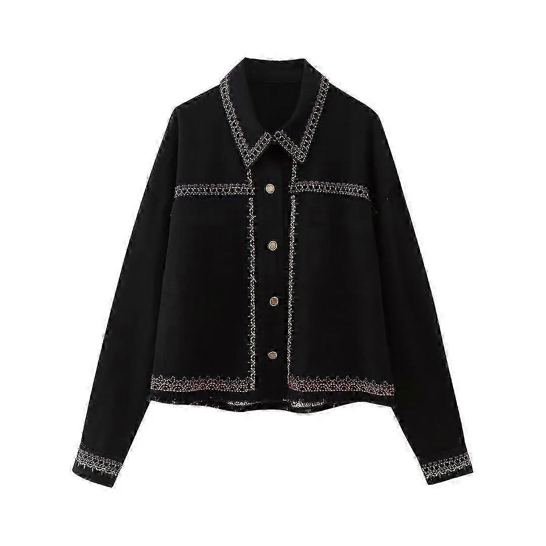 2025 Woman Fashion 2023 Autumn Outwear Embroidery Long Sleeve Single Breasted Jacket Female Crop Tops Vintage Coats High Street