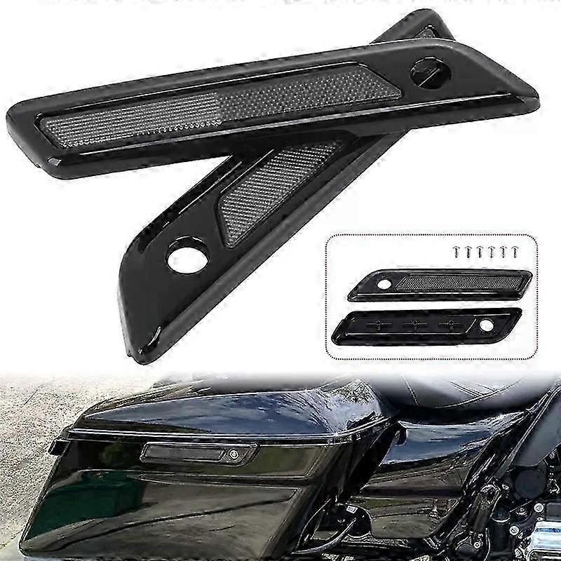 Motorcycle Black Hard Saddlebag Latch Cover Smoke Reflectors For Harley Touring Road King Road Glide Street Glide 2014-up