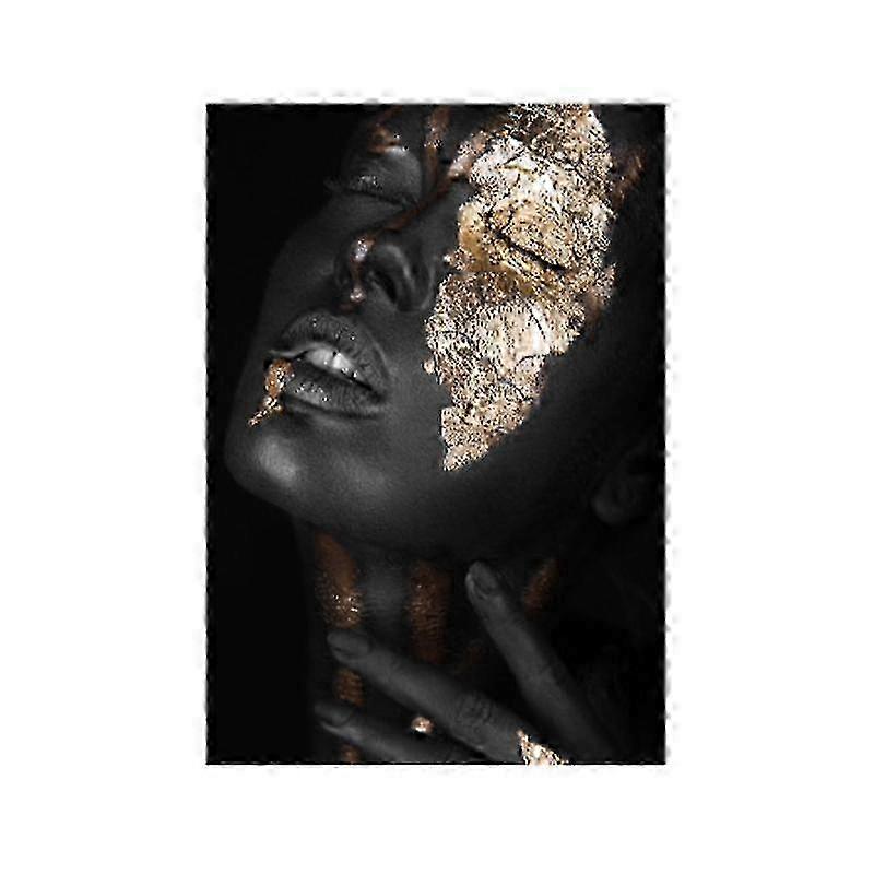 2025 African Black Woman With Gold Foils Oil Painting On Canvas Scandinavian Posters and Prints Wall Art Picture for Living Room