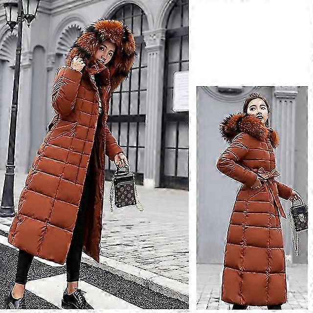 2025 long Cotton coat female new winter over knee loose large fur collar hooded warm thick parkas women down cotton padded overcoat
