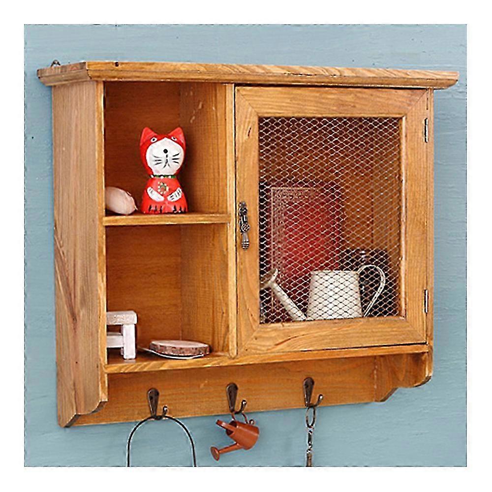 2025 zakka wooden iron mesh wall-mounted locker storage cabinet