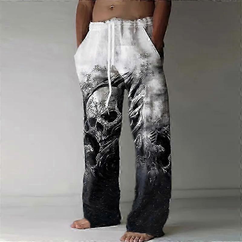 2025 Men's Loose Casual Solid Color Trousers Skull Printed Straight Pants