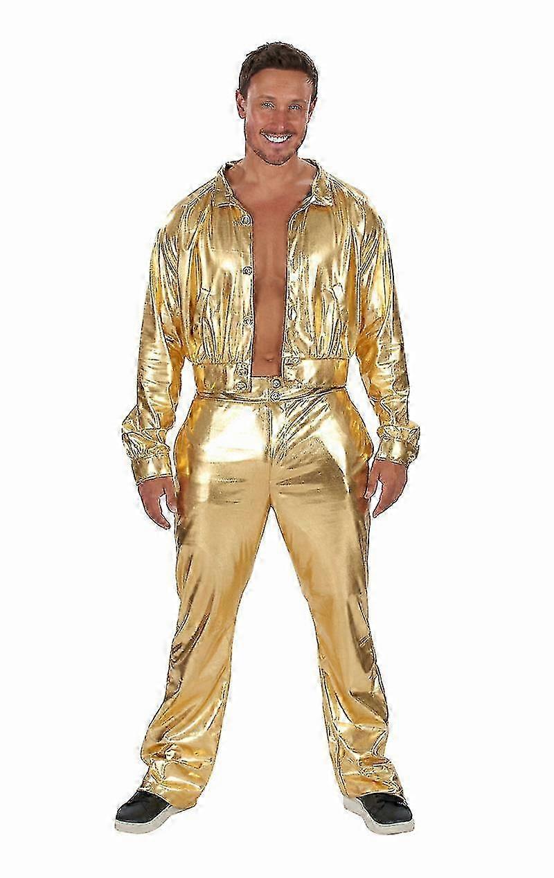 2025 Men's 70's Gold Suit Disco Fancy Dress Costume