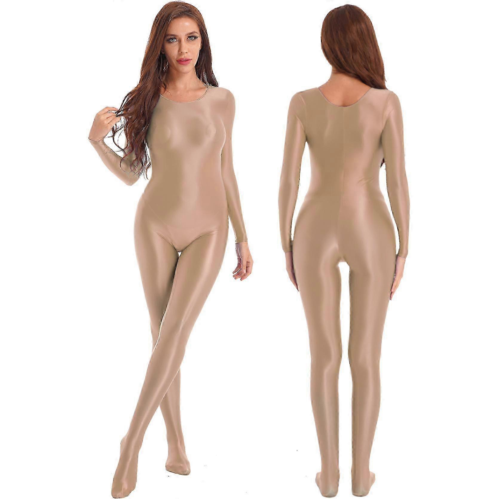 2025 Womens Glossy Smooth Full Body Leotard Bodysuit Jumpsuit Long Sleeve Bodystocking for Sports Fitness Rave Party Clubwear