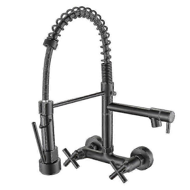 2025 Chrome/black Kitchen Faucet Dual Handles Hot Cold Water Kitchen Mixer Tap Wall Mounted Dual Swivel S