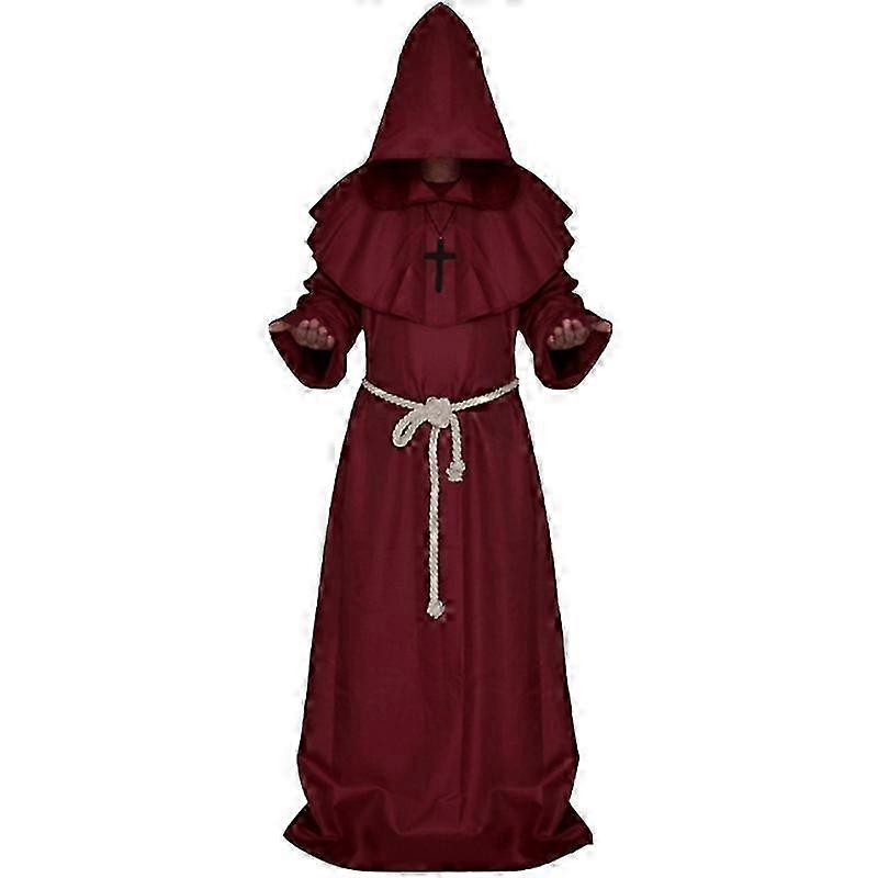 2025 Men Monk Hooded Robe Cloak Cape Friar Medieval Priest Cosplay Costume