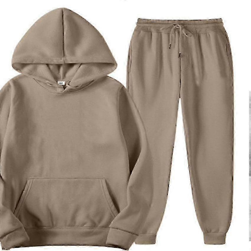 2025 Men's Solid Color Hooded Pullover Sets Autumn Winter Fleece Hoodie Two Piece Suit Plus Size Men's Sportswear Pant Tracksuit