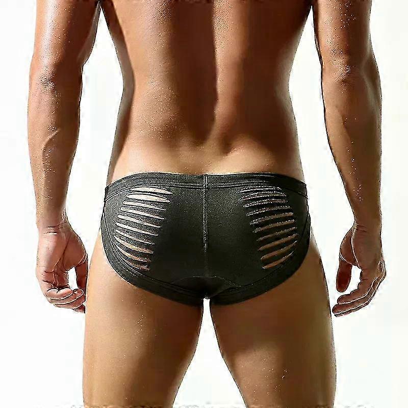 2025 Men's Erotic Brief Underwear Striped Hollowed Out Tanga Adult Low Waist U Convex Pouch Mankini Gay Sexy Open Buttocks Underpants